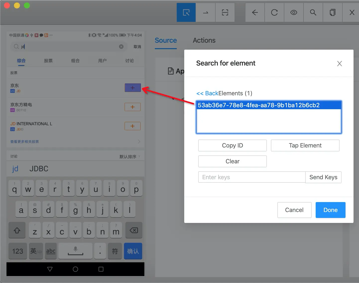 直接手撕例子,目标是定位到搜索结果中京东一栏的添加按钮