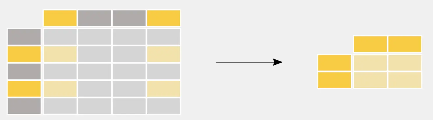 # 取索引为 1 到 3 (不含)的行,索引为 2 到 5(不含)的列