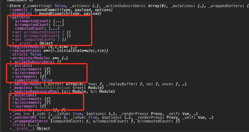 有些同学在使用过程中发现,如果我们的子module的namespaced 设置为false 或者不设置的话 在同名情况下我们的getters方法定义会有冲突报错,但是action 和 mutation 不会,而且当我们调用的时候,它会两个定义的方法都执行?这是为什么呢?
