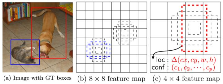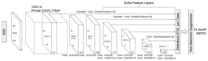 上面的两个图片摘自论文SSD: Single Shot MultiBox Detector,在论文中SSD是插入到VGG-16网络中的。