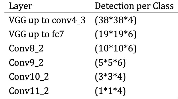 通过一个表格我们能够知道我们从不同层中得到的先验框尺寸和数目: