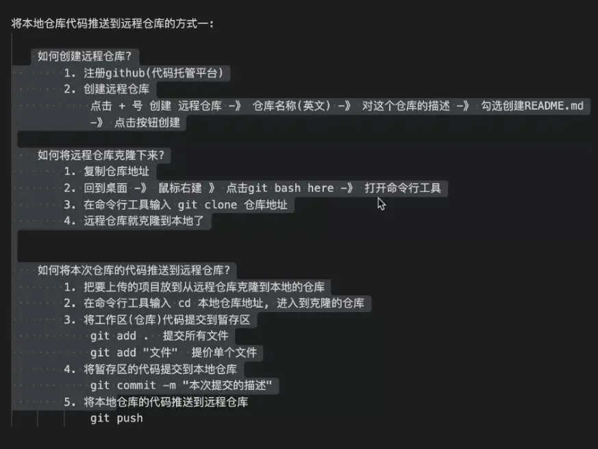 说明: 将本地仓库的代码推送到远程仓库(代码托管平台)