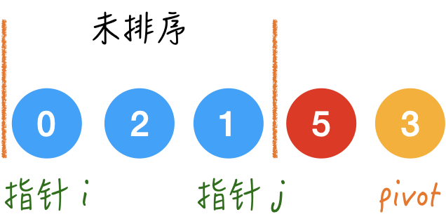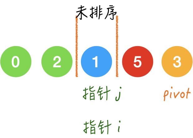 - 左边的区间用来放小于 pivot 的元素;