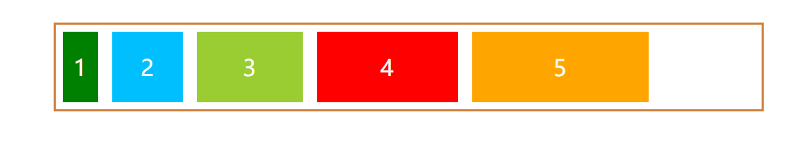 默认情况下,无论flex容器的宽度是多大,子元素都会排列在一条线上。如果flex容器的宽度小于所有子元素宽度的总和,那么子元素的宽度就会按比缩小,以至适应flex容器。