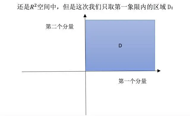 很明显,这部分空间无法满足“线性组合仍在空间中”的要求,比如数乘运算时,随便取个负数,向量就跑到第三象限去,脱离 D 空间范围内了。