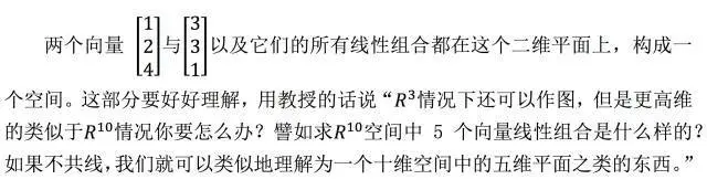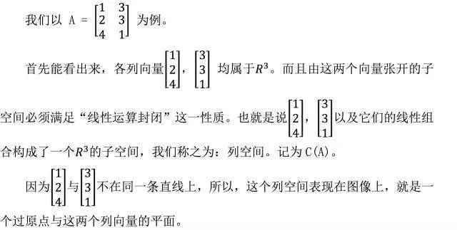 这里还要注意列向量之间的性质,如果列向量之间就是共线的,那么其列空间就是一条过原点的直线。