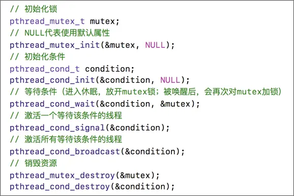 pthread_mutex_t (互斥锁”,等待锁的线程会处于休眠状态)