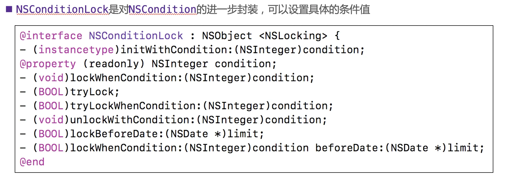 NSCondition (符合OC习惯,对mutex和条件的封装)