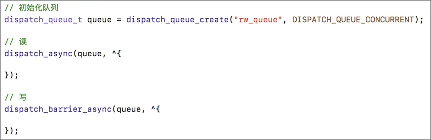 os_unfair_lock OSSpinLock dispatch_semaphore pthread_mutex dispatch_queue(DISPATCH_QUEUE_SERIAL) NSLock NSCondition pthread_mutex(recursive) NSRecursiveLock NSConditionLock @synchronized