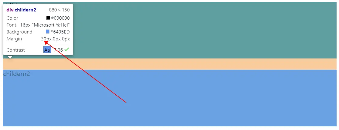 <!DOCTYPE html> <html lang="en"> <head> <meta charset="UTF-8"> <meta name="viewport" content="width=device-width, initial-scale=1.0"> <title>BFC</title> <style> .childern1{ height: 150px; background-color: cadetblue; margin-bottom: 20px; } .childern2{ height: 150px; background-color: cornflowerblue; margin-top: 30px; } </style> </head> <body> <div class="childern1">childern1</div> <div class="childern2">childern2</div> </div> </body> </html>效果如图: