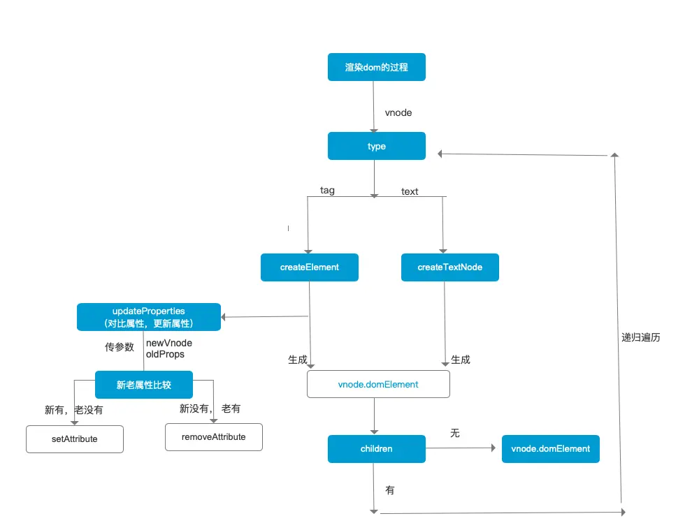 - 虚拟dom如何渲染成真实的dom