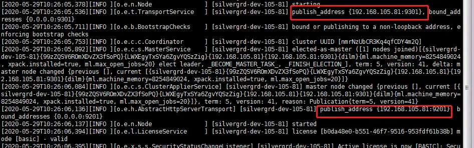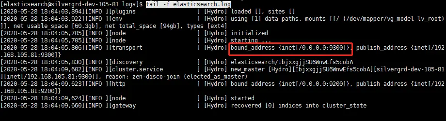 查看启动日志tail -f /var/log/elasticsearch/my-application.log观察是否启动成功。