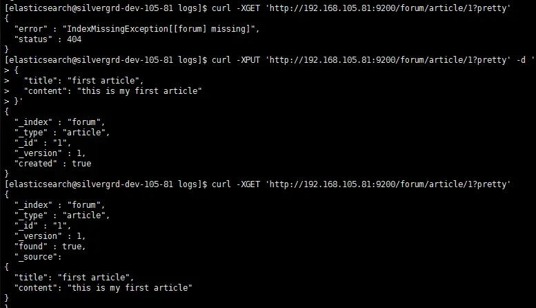 curl -XPUT 'http://localhost:9200/forum/article/1?pretty' -d '