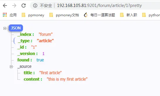 curl -XGET 'http://localhost:9200/forum/article/1?pretty'