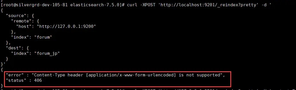 curl -XPOST 'http://127.0.0.1:9201/_reindex?pretty' -H 'content-Type:application/json' -d '