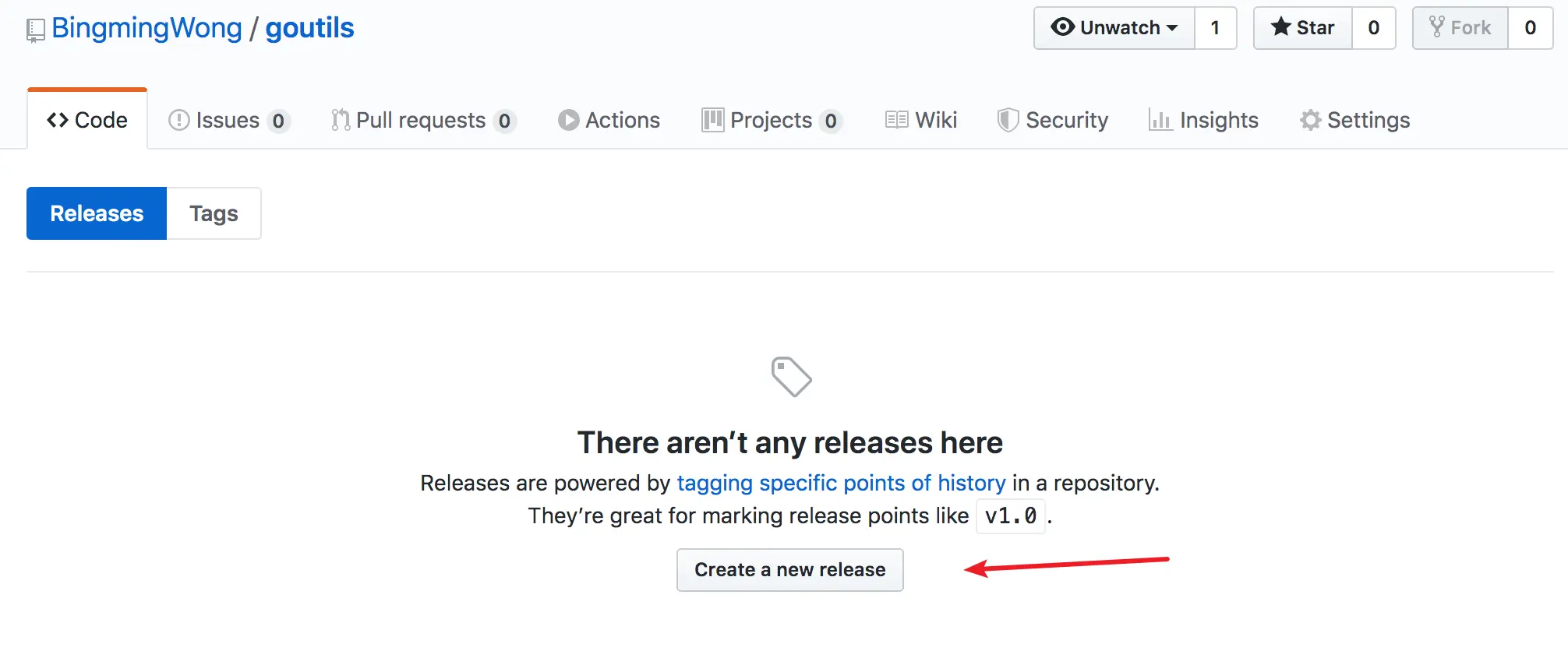 一切完成后,刷新我们的仓库,就可以看到我们的刚刚上传的项目代码了,点击 release 发布一个版本