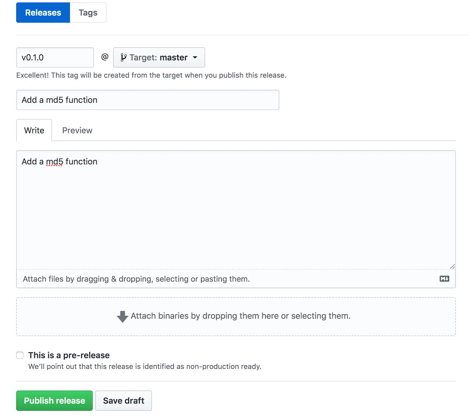 最后点击一个 Publish release,就发布了一个版本