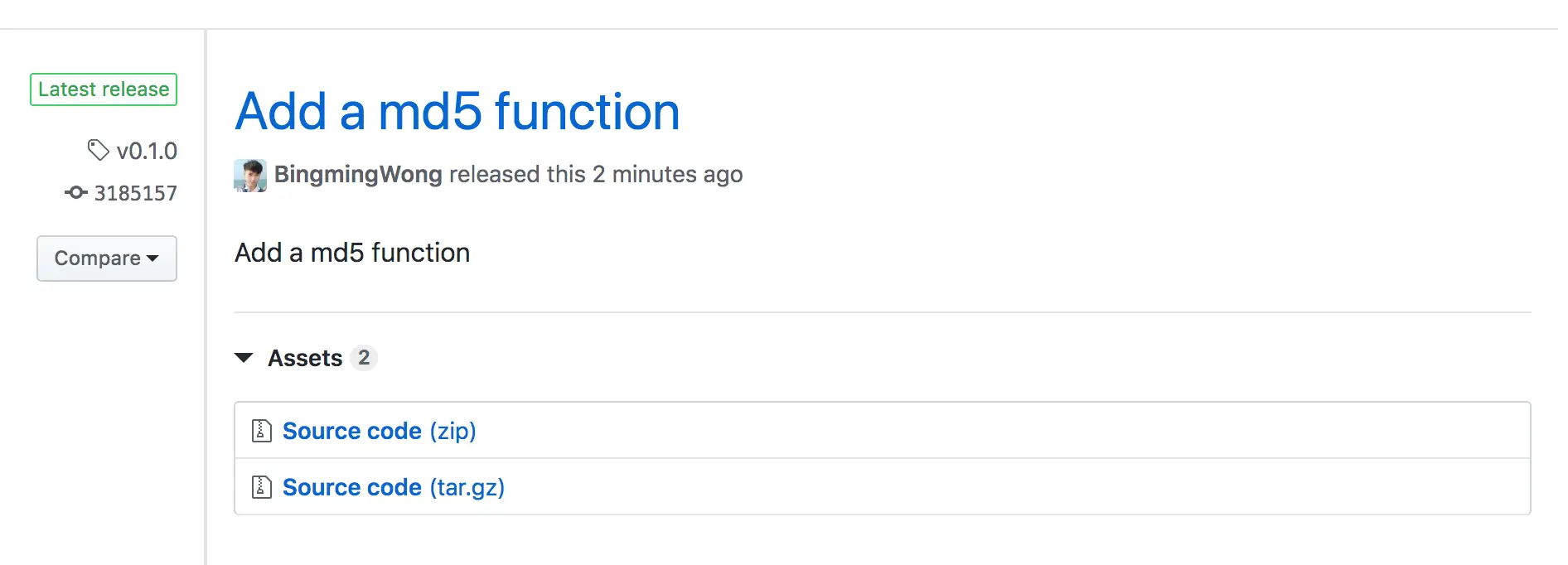 $ git commit -m "Add a md5 function"