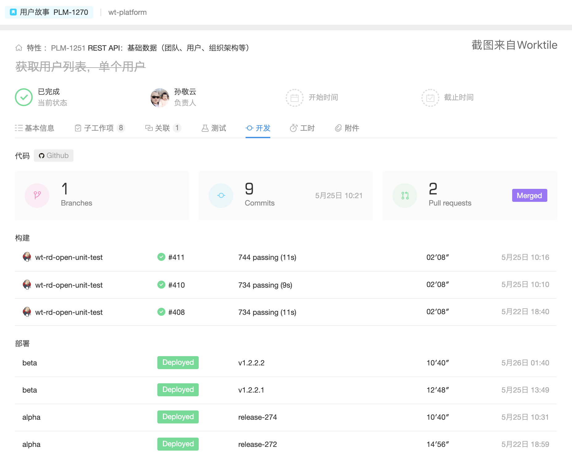 最近我和徐大神(Shaun Xu)在分享Scrum实践经验时,经常有听众问:“用户故事为什么要关联开发数据呢?”。这个问题里提到的“开发数据”指的是代码提交、代码评审、构建和部署记录,而“关联”指的是在Worktile工作项的开发面板中显示这些数据。