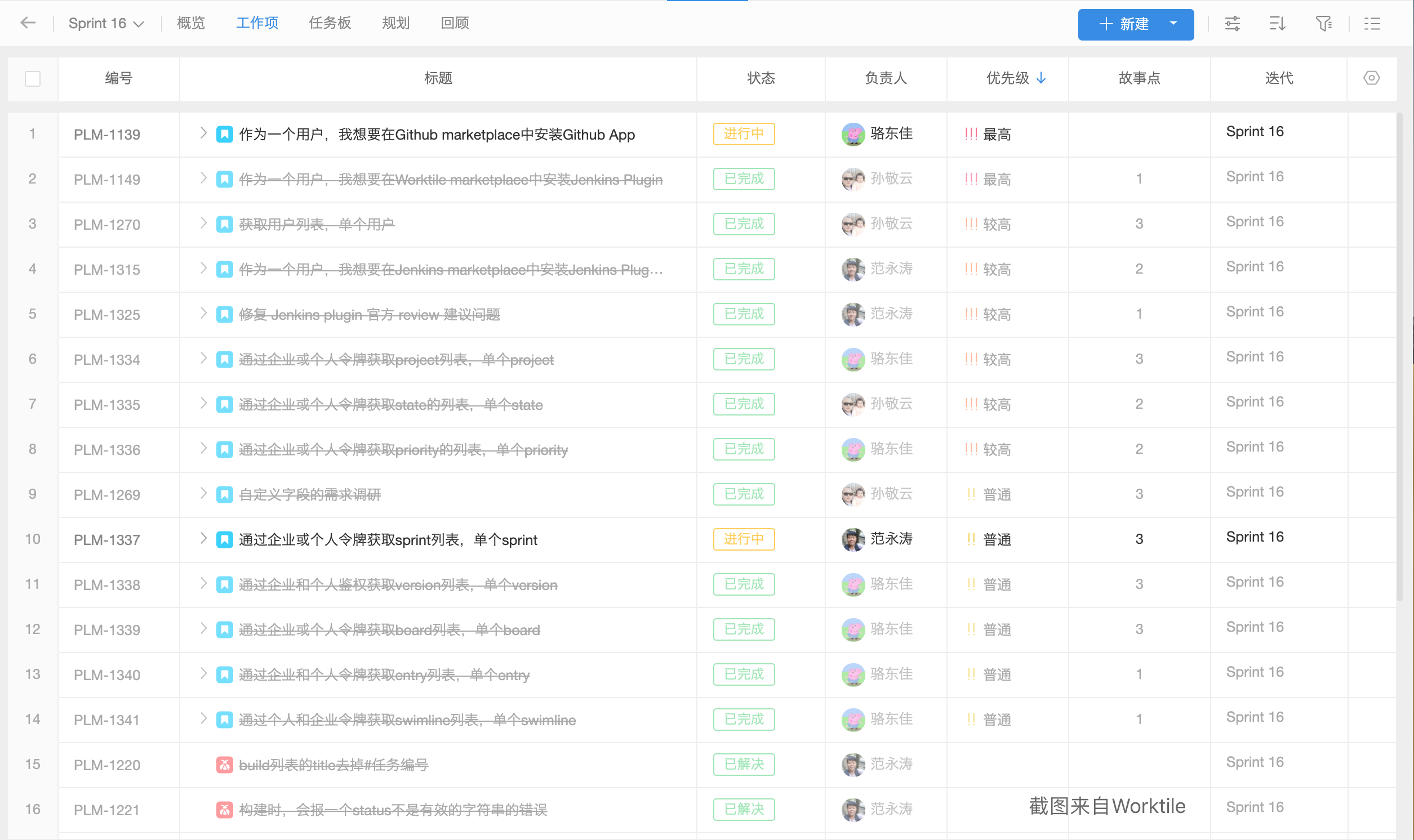 (一个sprint内的工作项列表)
