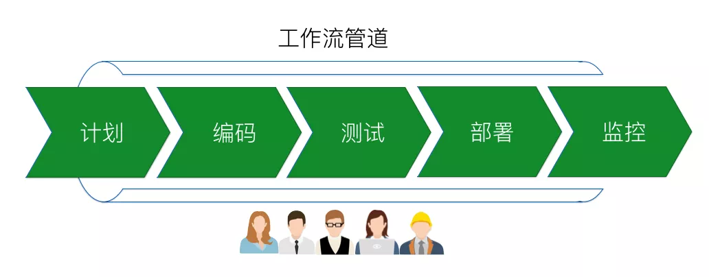 第一工作法指的是,我们要建立从开发到运维再到客户的整个自左向右、快速的、平滑的、能向客户交付价值的工作流。如果我们将左侧延伸到需求的制定,那么大体上这个工作流是这样的: