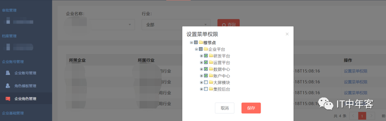 c)不同的企业根据所属行业 ,默认分配行业功能集,也可根据企业调整个别功能