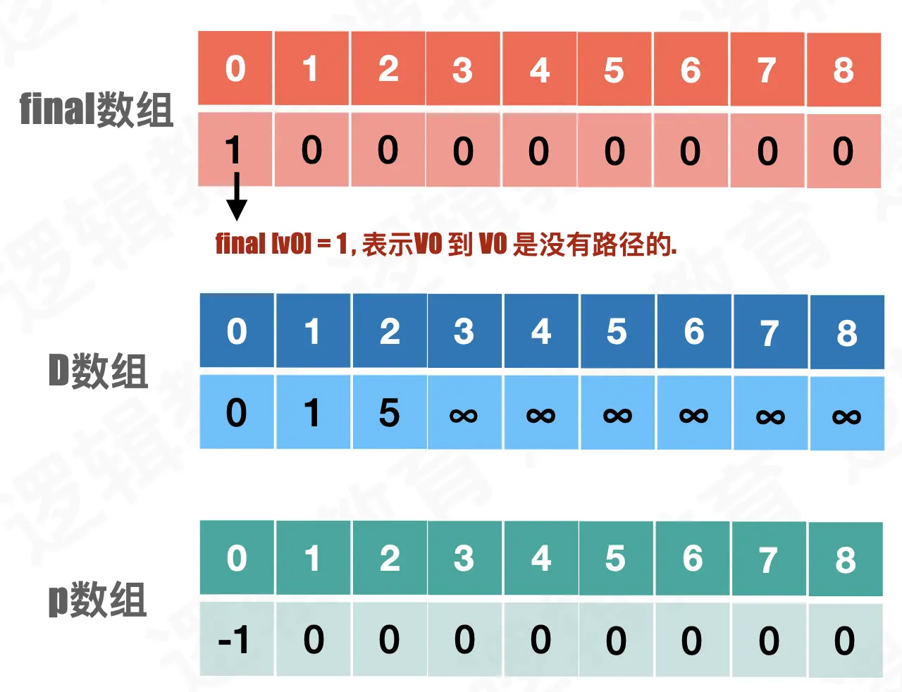 p数组作⽤用: 当前顶点的前驱顶点的下标;