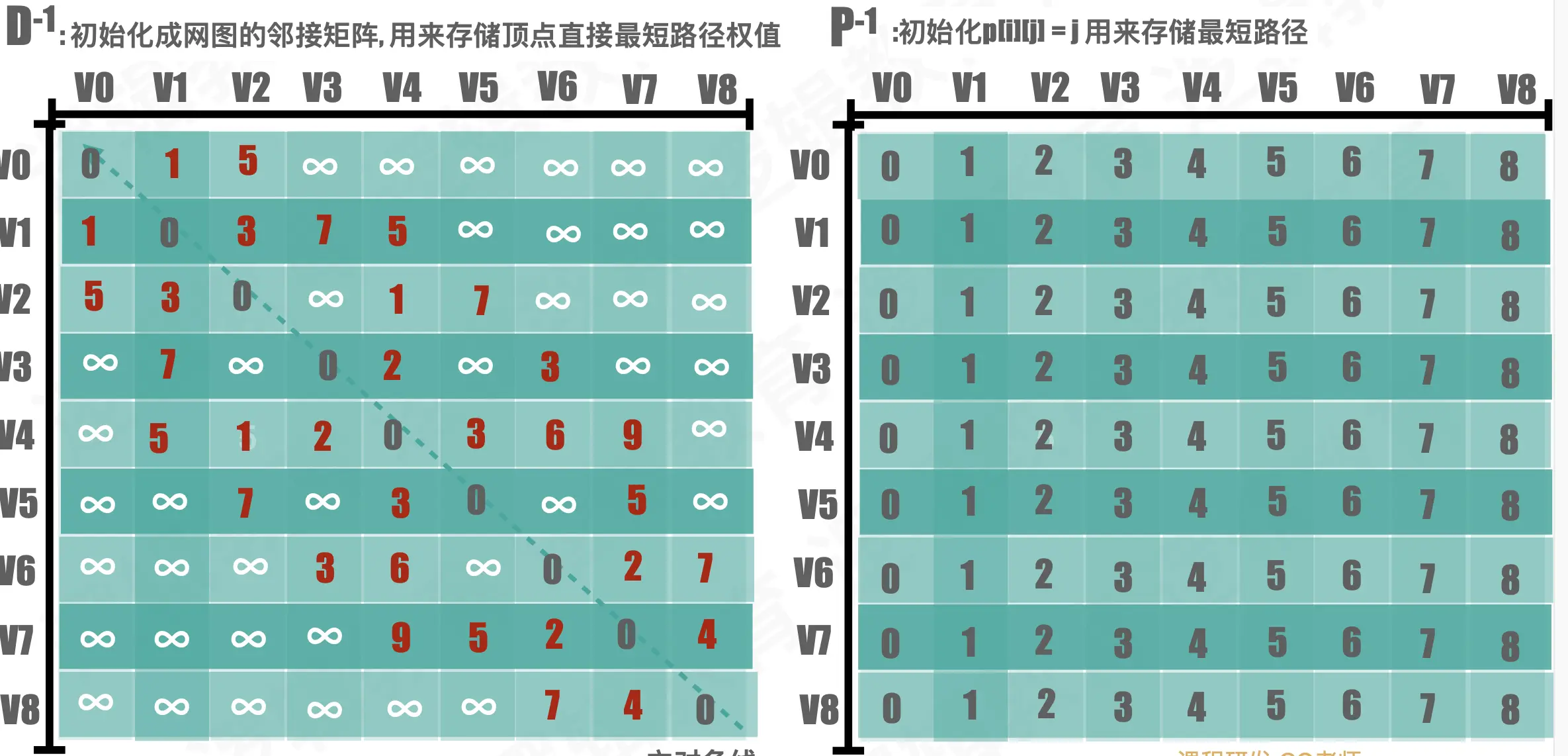/* 1. 初始化D与P 矩阵*/