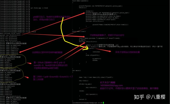 pid = fork();//复制之时,子进程是得不到pid的内容的,而父亲运行时是返回它自己 所以一直不变