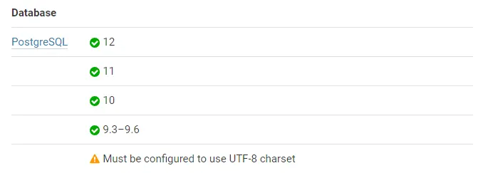 为什么需要选择安装 PostgreSQL 10 可以参考官方文档的 Requirements Database 列表: