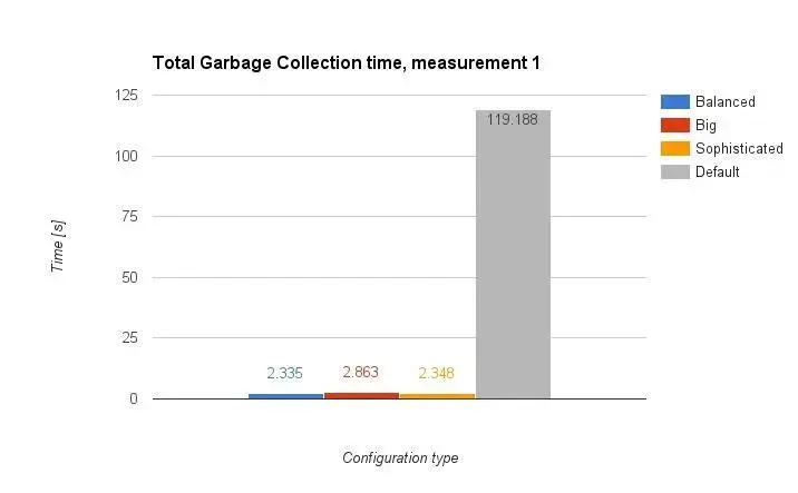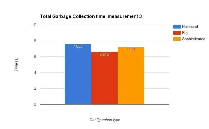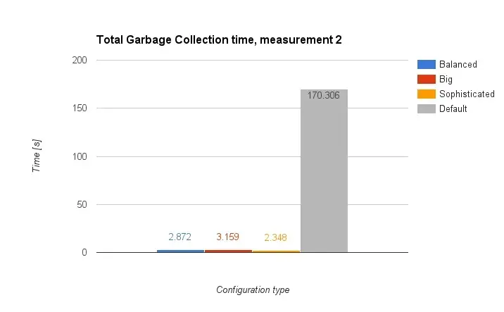 89.70 0.00 81.26 74.27 95.68 91.76 40 2.444 14 0.715 3.159在本文中,最重要的参数是 GC 事件( YGC 和 FGC )次数和收集时间( YGCT 和 FGCT )。