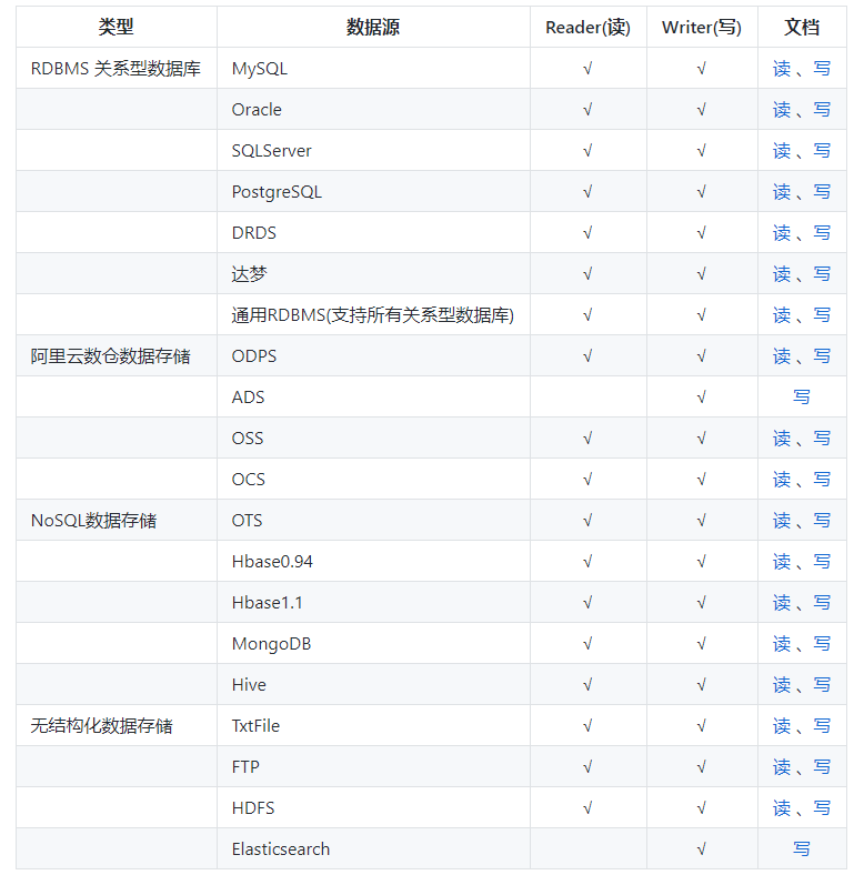 Reader和Writer通过DataX框架连接;形成一个数据流通管道;
