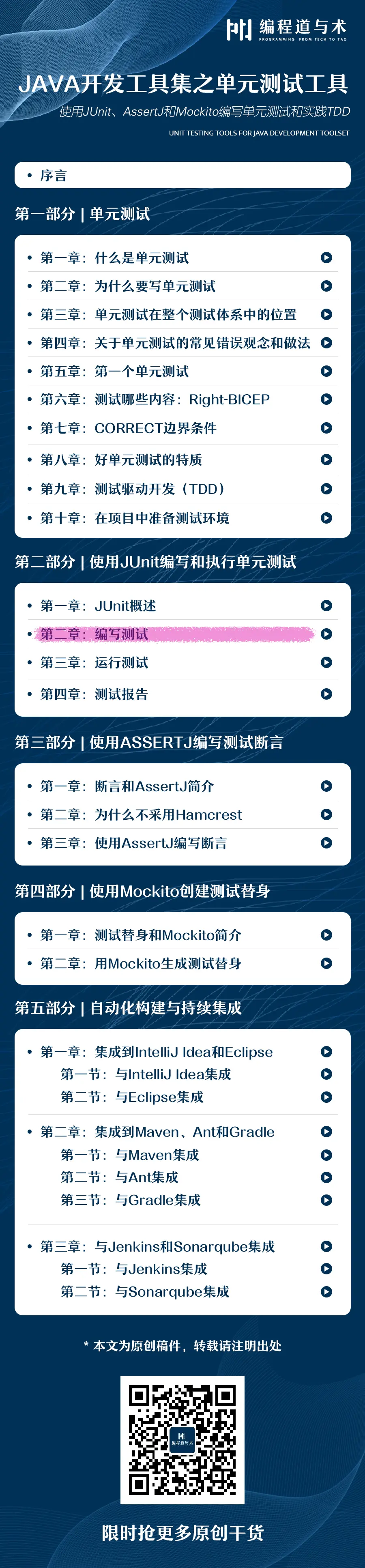 上一章我们分享了“使用JUnit、AssertJ和Mockito编写单元测试需要准备好的开发环境”。这一章我们来讲讲“什么是JUnit”。