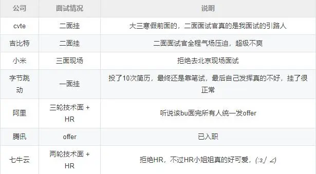 按时间顺序目前面试了cvte,吉比特,小米,字节跳动,阿里,腾讯WXG,七牛云,拿到七牛云HR,腾讯的offer,阿里offer。