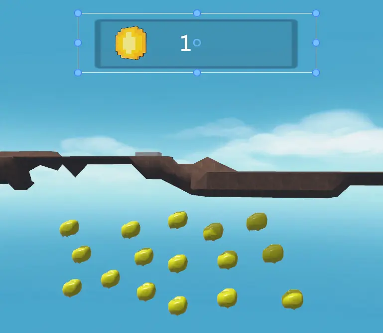 4、做一个显示金矿数量的UI界面: