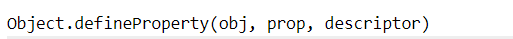 obj 是要在其上定义属性的对象;prop 是要定义或修改的属性的名称;descriptor 是将被定义或修改的属性描述符。