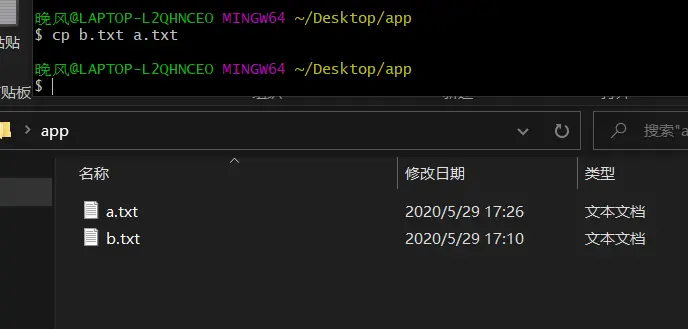 - cp 文件 复制出来的文件