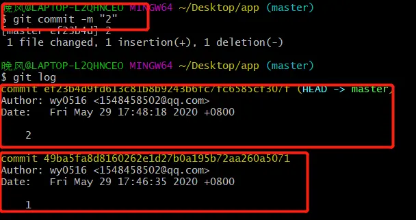2.1 查看历史记录 git log(查看的是你传输到本地仓库的数据)