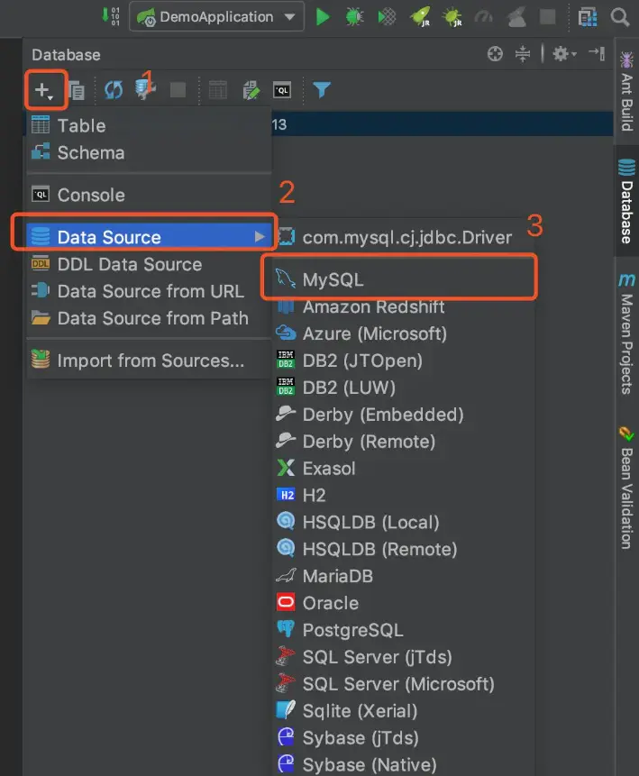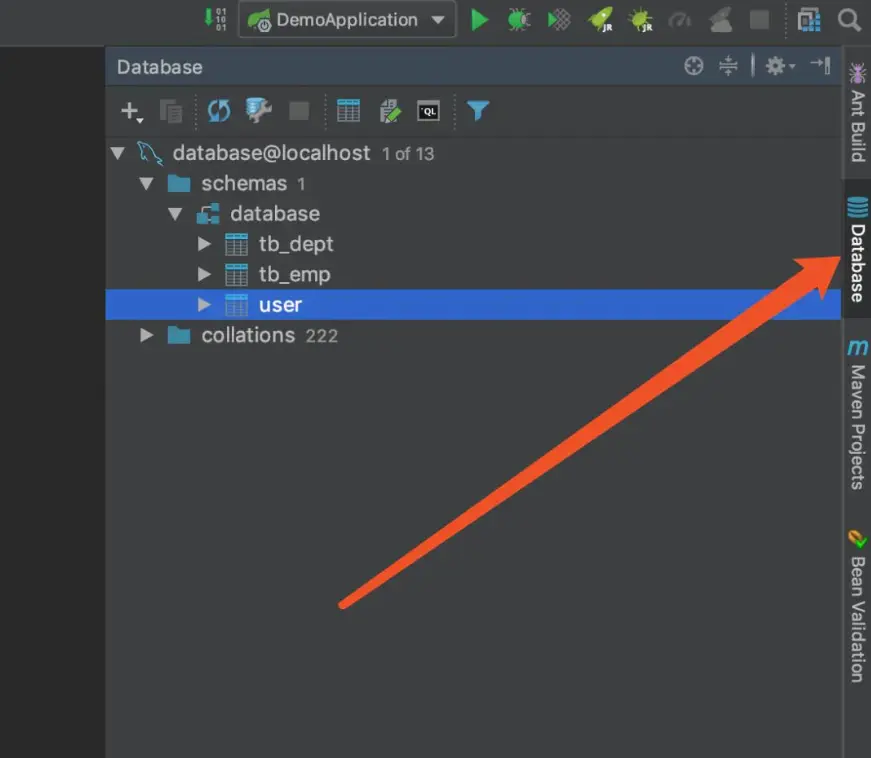 建好SpringBoot项目之后,如下图所示,找到这个Database
