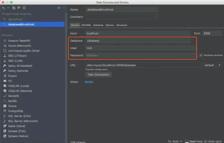 然后填写数据库名字,用户名,密码。点击OK即可。这样的话,IDEA连接数据库就完事了。
