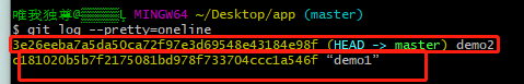 首先我们在本地仓库中进行三次存储,分别为“demo1”,“demo2”,“demo3”。