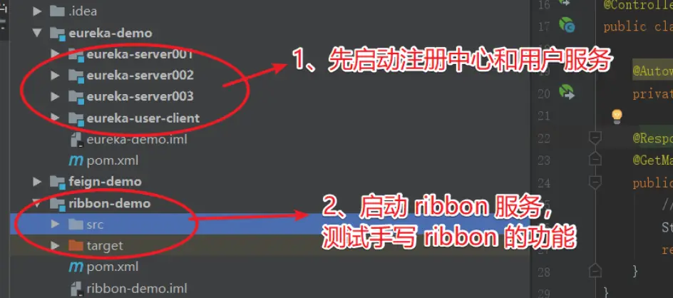 - SpringCloud 通过 Feign 或 RestTemplate 调用接口时,底层默认整合 Ribbon 实现调用接口,所以我们使用 SpringCloud 调用其他微服务接口,不需要特意整合 Ribbon。这里纯手写 Ribbon 只是为了方便理解 Ribbon 的实现原理。