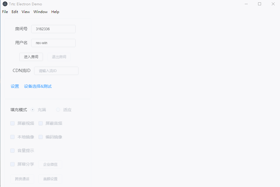 如果在 Windows 或 Mac 平台推直播流,强烈建议使用 TRTC Electron,旁路推流可同时生成 flv 和 hls 流,跟腾讯云即时通信 IM 完美结合,稳定可靠,服务周到,价格美丽。 跑通 Electron Demo 这篇文档会帮您快速实现直播和旁路推流,效果如下:
