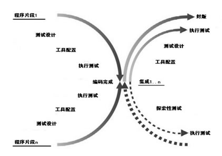 X模型的左边描述的是针对单独程序片段所进行的编码和测试