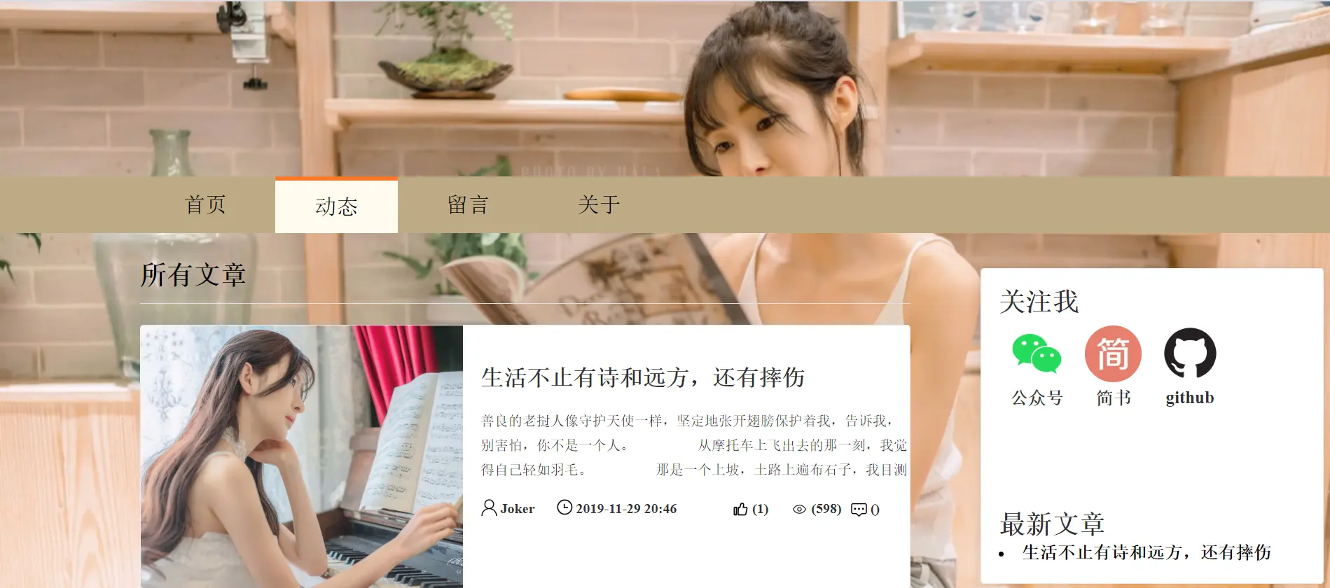 性别男,95后,是一位浪漫的现代主义诗人,号温酒居士,兼职写代码,爱诗歌,爱音乐,爱读书,爱旅游,爱学习,爱生活,爱赚钱,爱江山更爱美人。