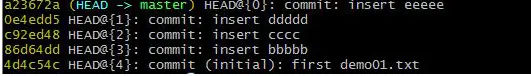 - git reset --hard 索引值(如上图中的a23672a的索引等), 恢复文件