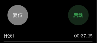 - 当点击停止按钮后,计次按钮变成复位按钮,停止按钮变成启动按钮。