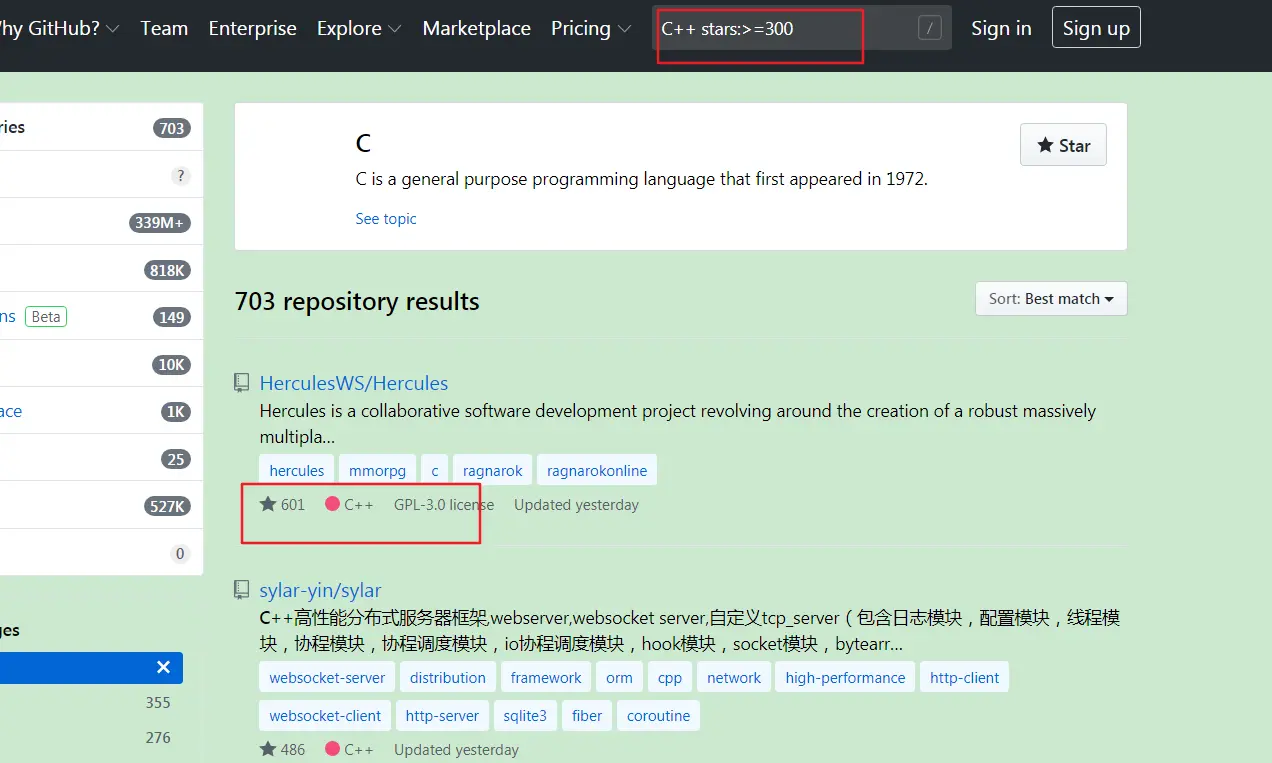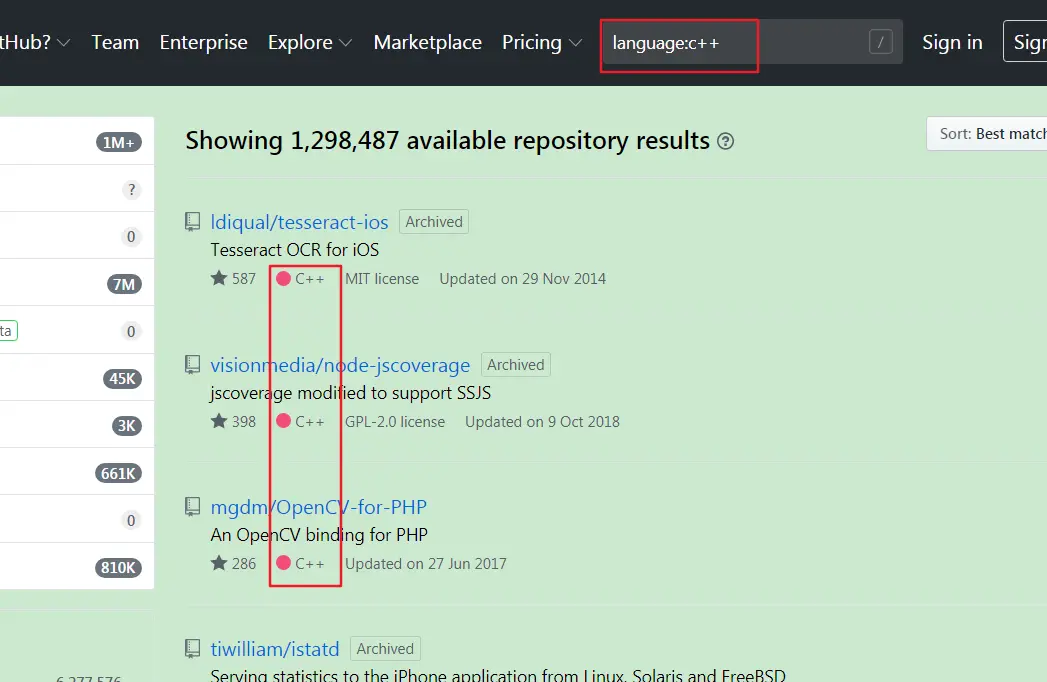 language:c++ ,匹配以c++作为开发项目的语言