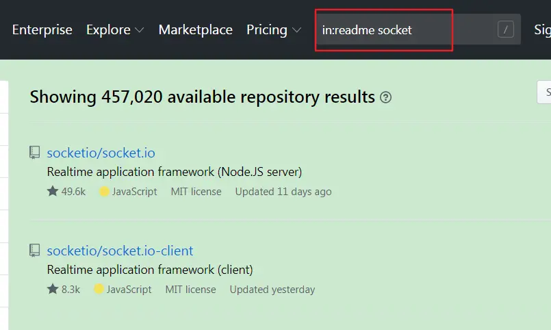- in:readme :表示在项目readme中搜索关键字