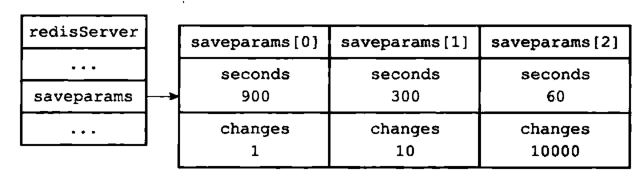 ①、首先看记录保存save条件的数组 saveparam,里面每个元素都是一个 saveparams 结构: